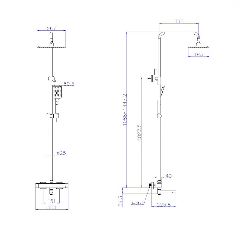 Душевая стойка со смесителем и изливом CEZARES SLIDER-CVD-GM
