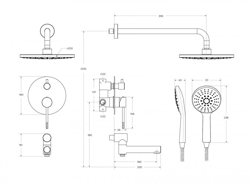 Душевой комплект встраиваемый с изливом CEZARES RELAX-VDSET-IN