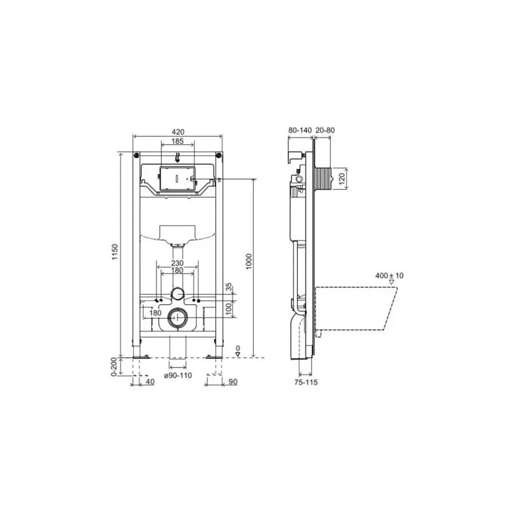 Нагрузка до 400 кг — инсталляция изготовлена из стали высокой плотности с антикоррозийной обработкой. Она защищена от ржавчины и коррозии. Конструкция протестирована на нагрузку более 400 кг, что делает ее устойчивой и долговечной.