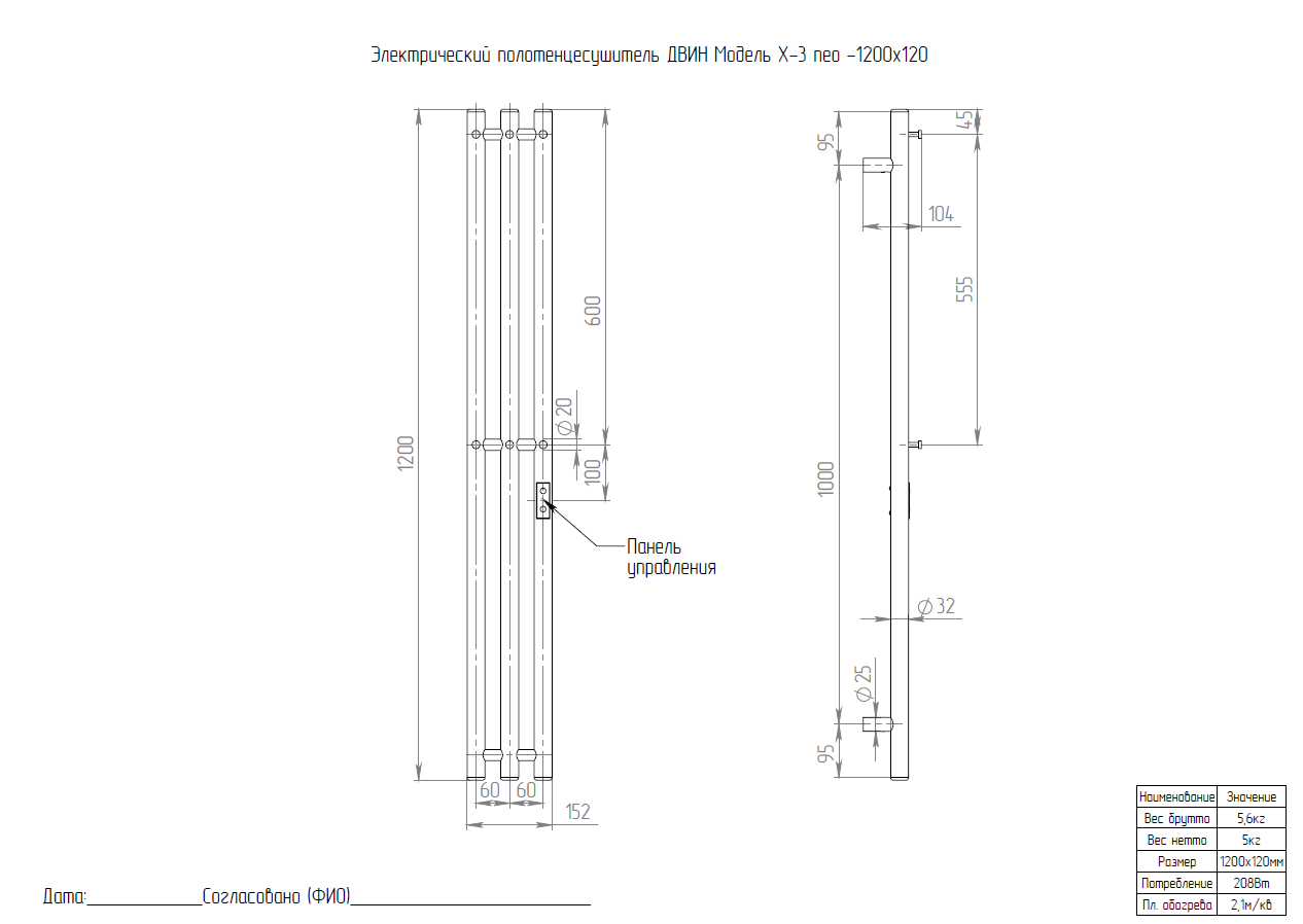 Полотенцесушитель ДВИН X-3 neo Сатин 120/12