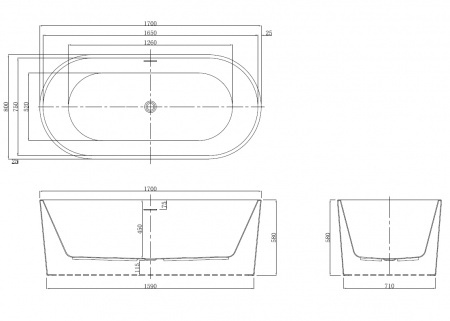 Ванна акриловая, свободностоящая, в комплекте с сифоном и металлической рамой.